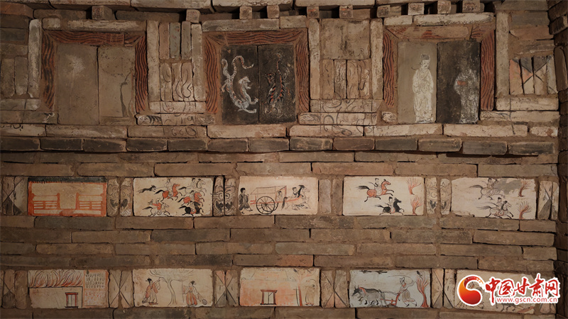 據(jù)考證,這批磚畫年代鎖定為公元3世紀中葉至4世紀初,以“一磚一畫”的極簡構(gòu)圖,將河西走廊古民居、農(nóng)牧、宴樂、神話與升仙想象封存至今,被譽為“可移動的地下壁畫館”。