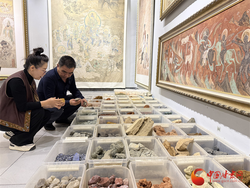 “也許缺少的那半塊,千年以前讓敦煌畫(huà)師撿走,經(jīng)過(guò)研磨用在繪制莫高窟壁畫(huà)中。”也是在一瞬間,王亞林感覺(jué)自己在和古人對(duì)話,對(duì)色彩的探索,為她打開(kāi)壁畫(huà)臨摹、保護(hù)、創(chuàng)作的大門。