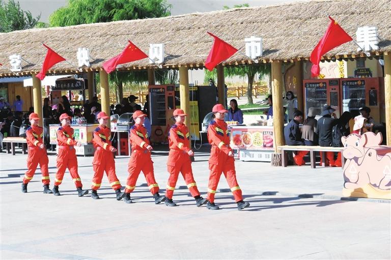 敦煌市消防救援大隊(duì)“九色鹿”女子服務(wù)隊(duì)在景區(qū)開展消防安全動態(tài)巡查。