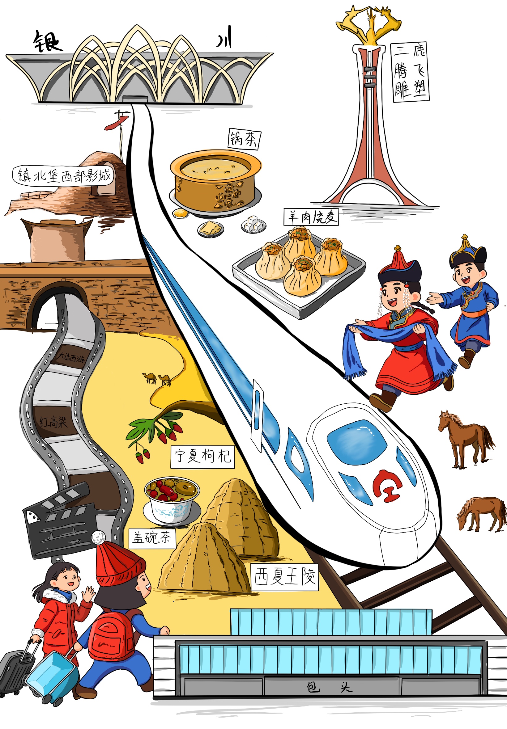 不負(fù)山河浩蕩,不負(fù)星河燦爛。這條貫穿西北的鋼鐵巨龍,不僅是一條便民出行的快捷線,更是助力發(fā)展的經(jīng)濟(jì)線、促進(jìn)交流的文化線。無論是由此帶來的沿線旅游、產(chǎn)業(yè)、就業(yè)的發(fā)展,還是鐵路企業(yè)自身建設(shè),都將呈現(xiàn)出勃勃生機(jī),為西北大地帶來更多的發(fā)展活力與無限可能。面向“十五五”,包銀高鐵必將推動沿線經(jīng)濟(jì)社會發(fā)展駛?cè)?ldquo;快車道”,在新征程上續(xù)寫更輝煌的篇章。(文字:陳浩媛  漫畫:李雨晴,朱雪菲)