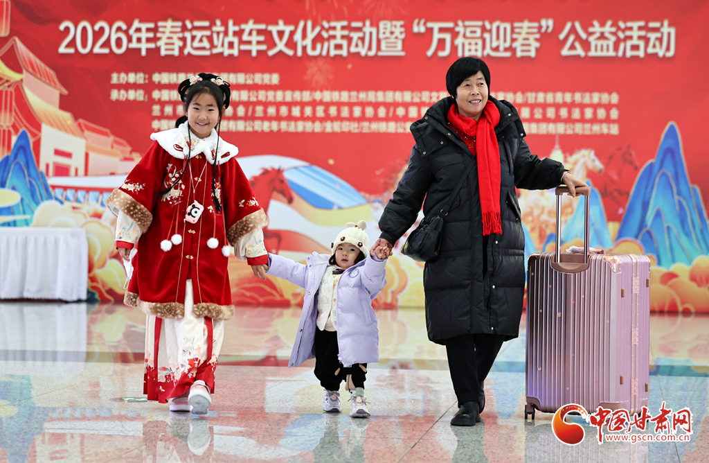 2月2日,2026年鐵路春運(yùn)大幕正式拉開。中國鐵路蘭州局集團(tuán)有限公司在蘭州西站候車廳開展“文明出行 文化相伴”特色暖心活動(dòng),邀請(qǐng)書法愛好者揮毫寫春聯(lián)、贈(zèng)“福”字,同時(shí)奉上精彩文藝表演,為旅客的回家路增添濃濃年味與溫情。