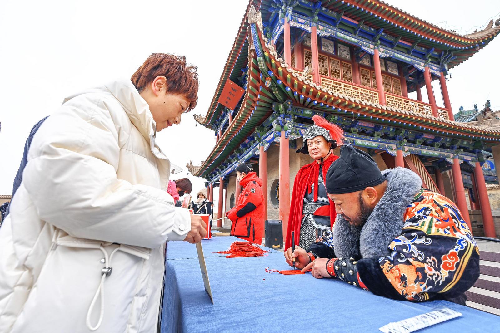 “雄關迎瑞 歡度新春”。春節(jié)假期,嘉峪關關城景區(qū)組織開展尋寶探秘、關長賜福等多項互動活動,在歡聲笑語中為游客送上新春祝福。(記者 徐霏 李巍 攝)