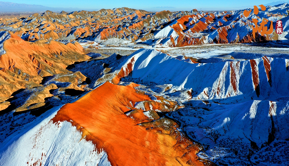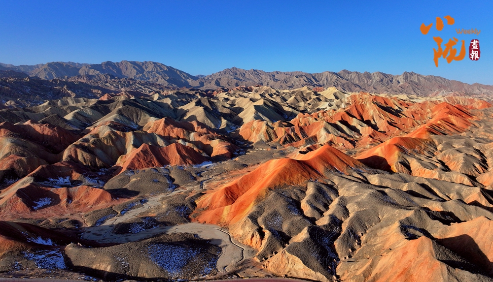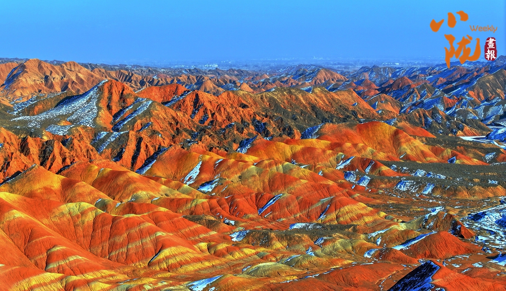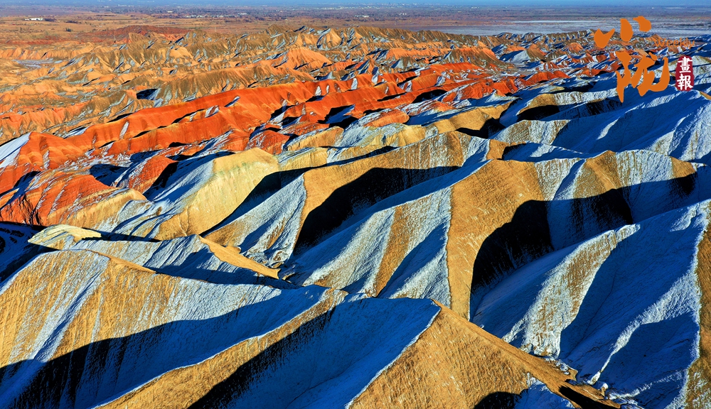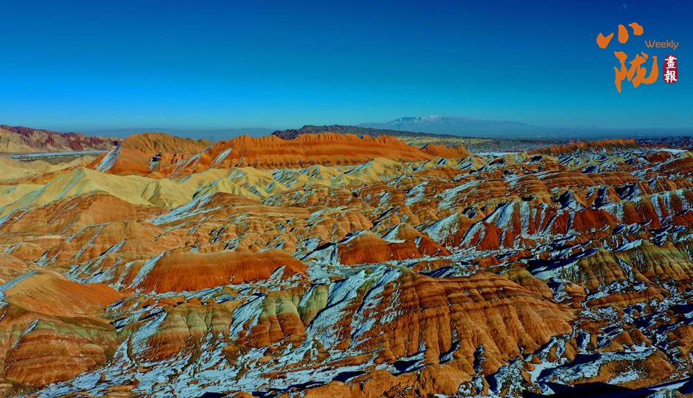 一場春雪后,臨澤七彩丹霞褪去了往日的張揚,化身為一幅“半是火焰、半是海”的水墨丹青長卷。