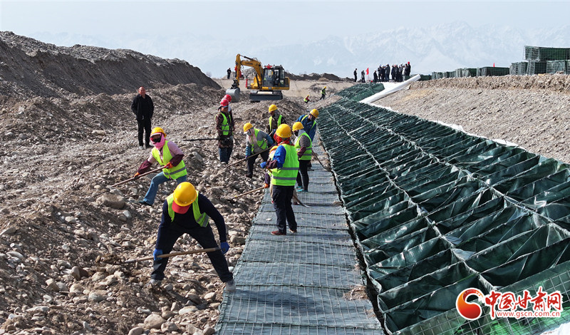 民樂縣大堵麻河防洪治理工程項目施工現(xiàn)場,工人們正在緊張有序地修筑河堤