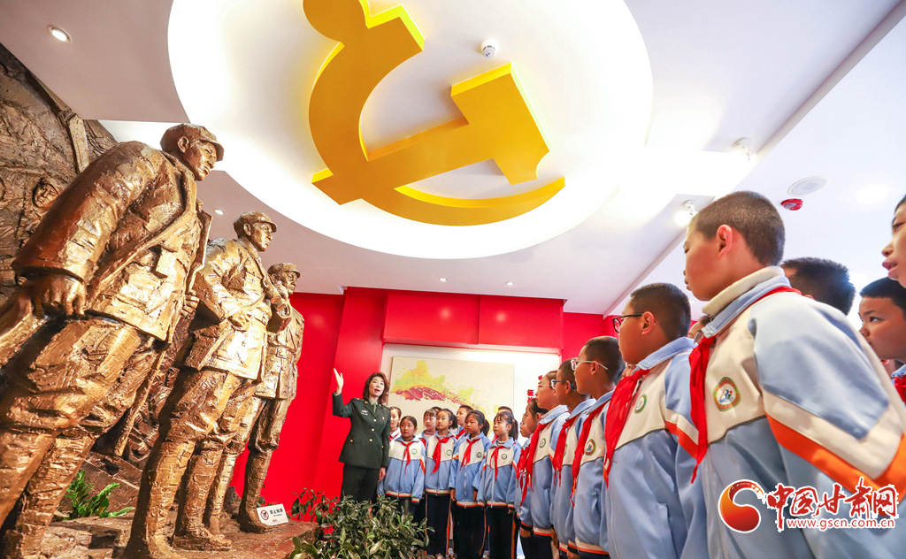 3月30日,高金城烈士紀(jì)念館內(nèi),張掖市甘州區(qū)北街小學(xué)的同學(xué)們正在聆聽(tīng)講解員講述革命烈士的壯烈事跡。